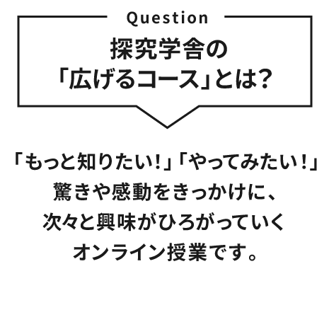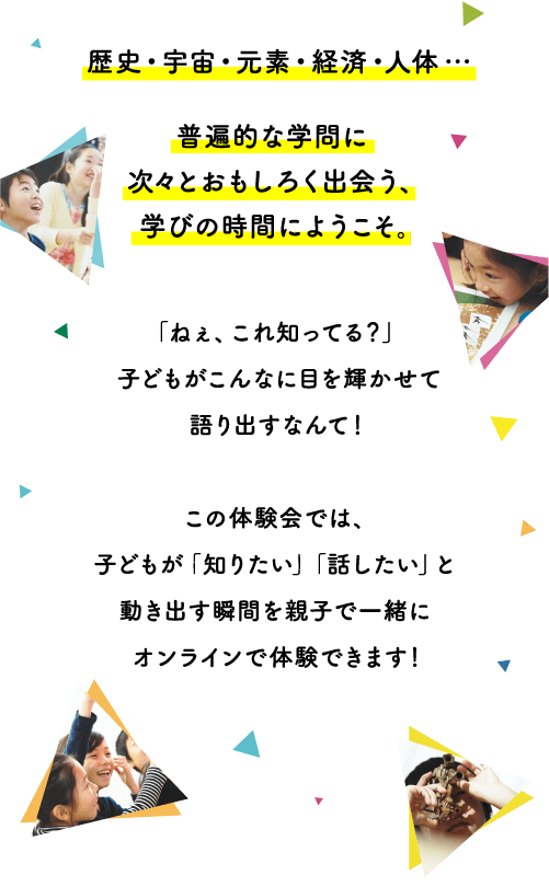 ただ聞くだけでなく、夢中になって、考えて、話して、オンラインでありながら五感を使った新しい学びを体験いただきます。